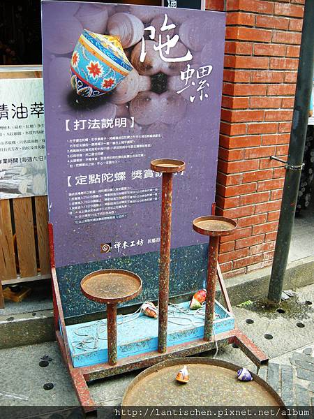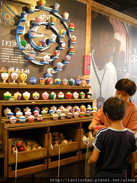 這裡還有教人家打陀螺唷!老師正在講解給小朋友聽呢!